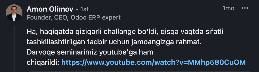 Hamkorlarimizga umumiy hisobda 2 mln $ ga teng bo'lgan sotuv qilishda yordam berganmiz